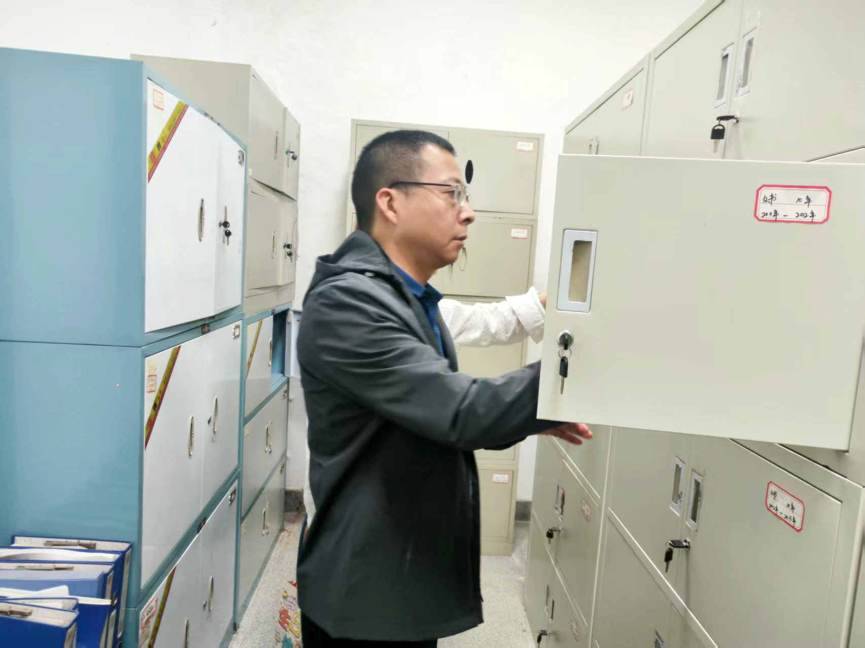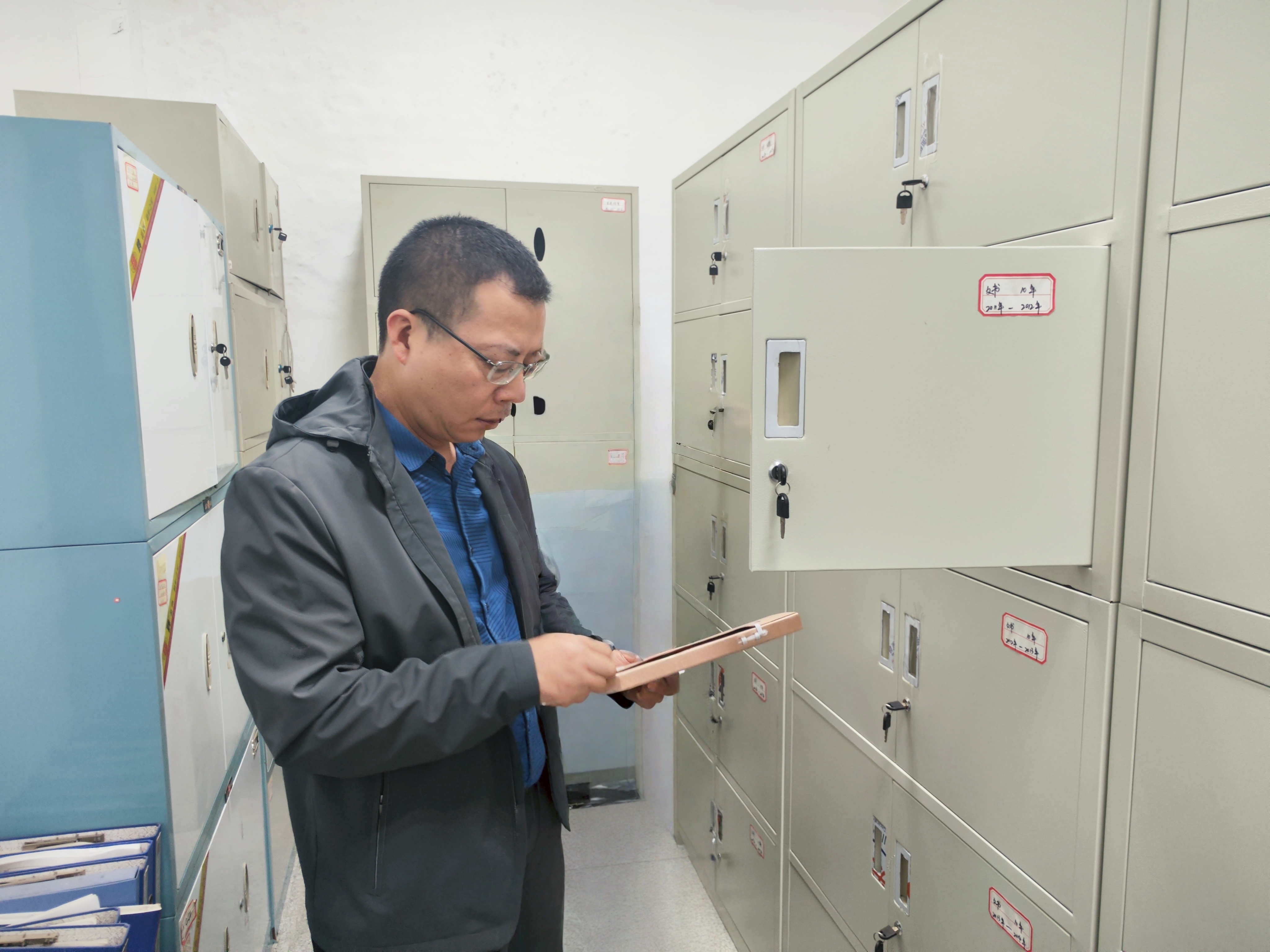 調研現(xiàn)場,朱亞成一行先后查看了檔案室基礎設施建設、安全防護和視頻監(jiān)控等相關情況,重點抽查了各類檔案的歸檔、存儲、保管及查閱使用情況,全面掌握當前檔案管理工作的實際現(xiàn)狀。