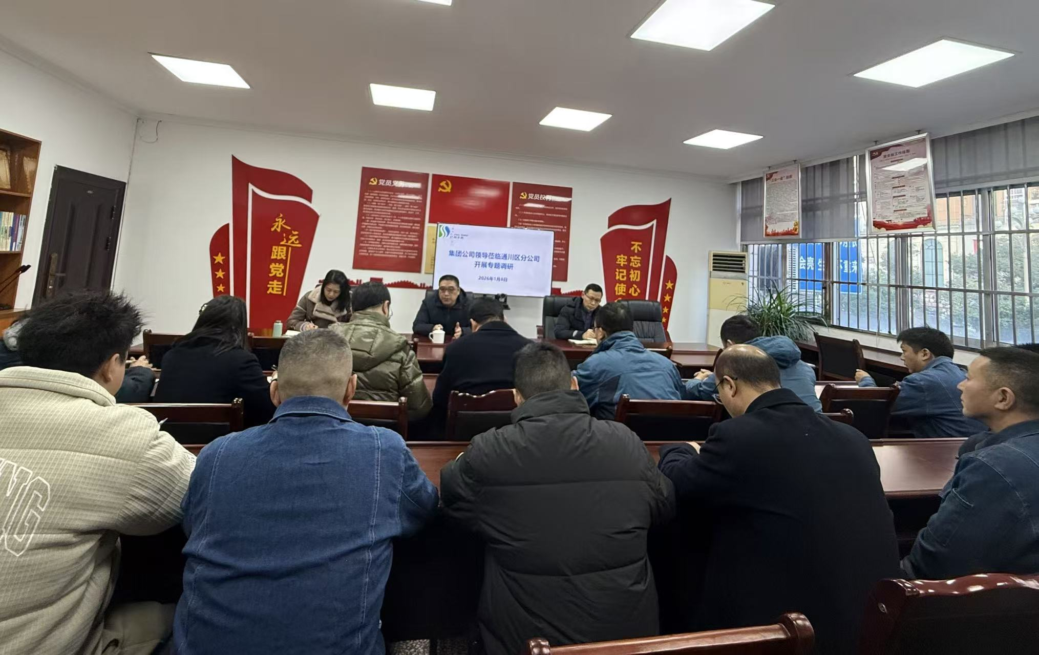 為切實筑牢“兩會”期間供水安全防線,1月8日,集團公司黨委副書記、總經(jīng)理熊戈亮,黨委委員、副總經(jīng)理楊力寧,黨委委員、副總經(jīng)理李莉君帶隊蒞臨通川區(qū)分公司,組織召開“兩會”期間保供專題工作會議。集團公司安全環(huán)保部、調(diào)度中心管理人員、通川區(qū)分公司管理人員及各科室負(fù)責(zé)人及維修骨干人員參加會議。