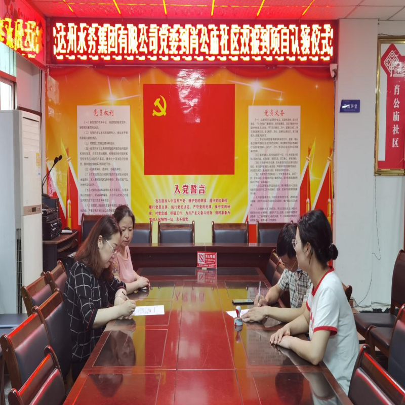 5月26日上午,集團(tuán)黨委副書記、工會主席李芙蕖代表集團(tuán)黨委到公司總部新駐地肖公廟社區(qū),就開展黨員社區(qū)“雙報(bào)到”工作與社區(qū)黨支部簽署本年度《達(dá)州市通川區(qū)社區(qū)服務(wù)項(xiàng)目認(rèn)領(lǐng)協(xié)議書》,完成了黨委到該社區(qū)“雙報(bào)到”的初次對接。