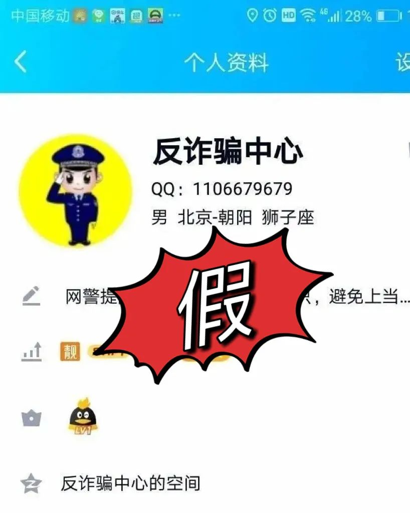 本期兩個(gè)案例中的市民遇到的仿冒“反詐中心工作人員”詐騙,是詐騙犯罪分子又一次的手段升級(jí)。 這類騙局中,騙子將QQ昵稱設(shè)置成“反詐中心”等名字,將頭像設(shè)置成國(guó)徽或反詐中心圖標(biāo),有的在空間圖片中,放處理好的照片等等進(jìn)行偽裝,讓受害人誤以為是真的反詐中心等部門的工作QQ。