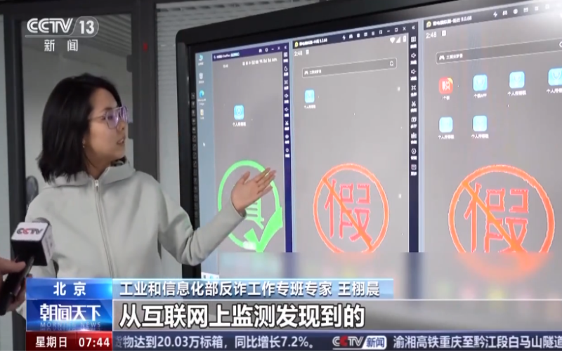 工業(yè)和信息化部反詐工作專班專家 蔡志禹:反詐專班已對涉詐App開展持續(xù)性監(jiān)測發(fā)現(xiàn)工作,對于監(jiān)測發(fā)現(xiàn)到的涉詐App,專班會進行行業(yè)共享,部分手機終端會對安裝此類App的用戶進行預(yù)警提示。我們公共服務(wù)平臺也即將上線,如果廣大群眾發(fā)現(xiàn)了類似的仿冒、涉詐App線索,歡迎大家通過平臺及時進行舉報。