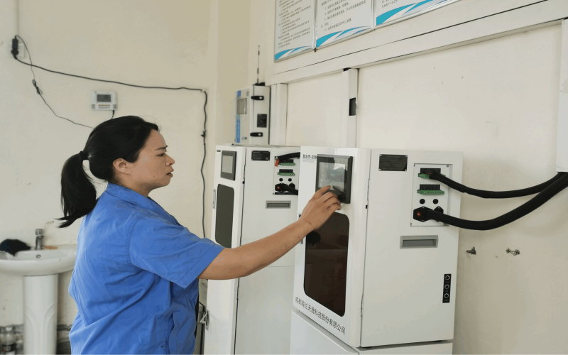 為了確保各個環(huán)節(jié)污水檢測指標正常,李紅每隔2小時就對進出口在線監(jiān)測室的在線設備、各類藥劑進行巡視,查看數(shù)據(jù)是否上傳成功,及時處理應急突發(fā)問題。水廠占地達130畝,一遍巡視下來就會花上1小時左右。當進口取樣管堵塞時,她帶領班組成員積極協(xié)助維修科等工作人員對取樣設備進行清理。為了減少進口監(jiān)測設備吸到雜質(zhì)堵塞檢測設備的管路,她每隔1-2小時還要對進水取樣口篩網(wǎng)進行沖洗,從來不怕臟、不怕累。