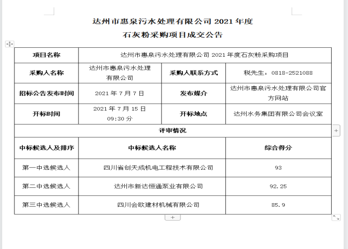 下一篇:達(dá)州市惠泉污水處理有限公司 2021年度石灰粉采購(gòu)項(xiàng)目競(jìng)爭(zhēng)性磋商公告