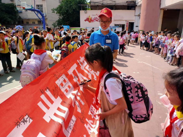 活動(dòng)中,志愿者們首先采取集中宣講和你問我答的方式向廣大師生廣泛普及環(huán)保知識(shí);呼吁廣大師生積極參與到環(huán)境保護(hù),堅(jiān)持從自己做起、從身邊做起,節(jié)約每一滴水、每一度電、每一張紙,進(jìn)一步調(diào)動(dòng)了全體學(xué)生爭(zhēng)做“環(huán)保小衛(wèi)士”的熱情。同時(shí),也希望用師生們的實(shí)際行動(dòng)影響和帶動(dòng)各自家庭的每一個(gè)人,讓更多的人共同參與到生態(tài)環(huán)境保護(hù)工作中來,爭(zhēng)做環(huán)境保護(hù)的宣傳員和行動(dòng)者,實(shí)現(xiàn)人人關(guān)心環(huán)保、人人參與環(huán)保的良好氛圍。其次,志愿者們積極開展了“美麗中國、我是行動(dòng)者”簽名承諾活動(dòng),全校師生更是踴躍參加,并主動(dòng)宣誓承諾,一定做一名合格的“環(huán)保小衛(wèi)士”。